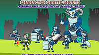 new product robot sprite sheet 7 enemy characters with 5 animations each; idle, run, walk, attack, and dead...